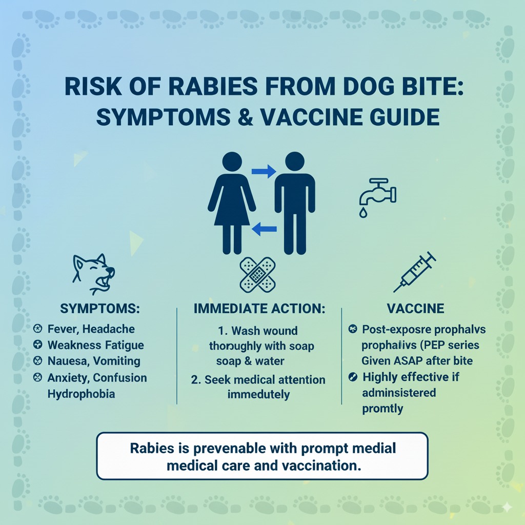 Understanding the risk of rabies from dog bite, administering first aid after bite, recognizing rabies symptoms, and receiving timely post-exposure prophylaxis are vital steps for prevention. Never delay seeking medical attention—rabies is preventable with prompt care.